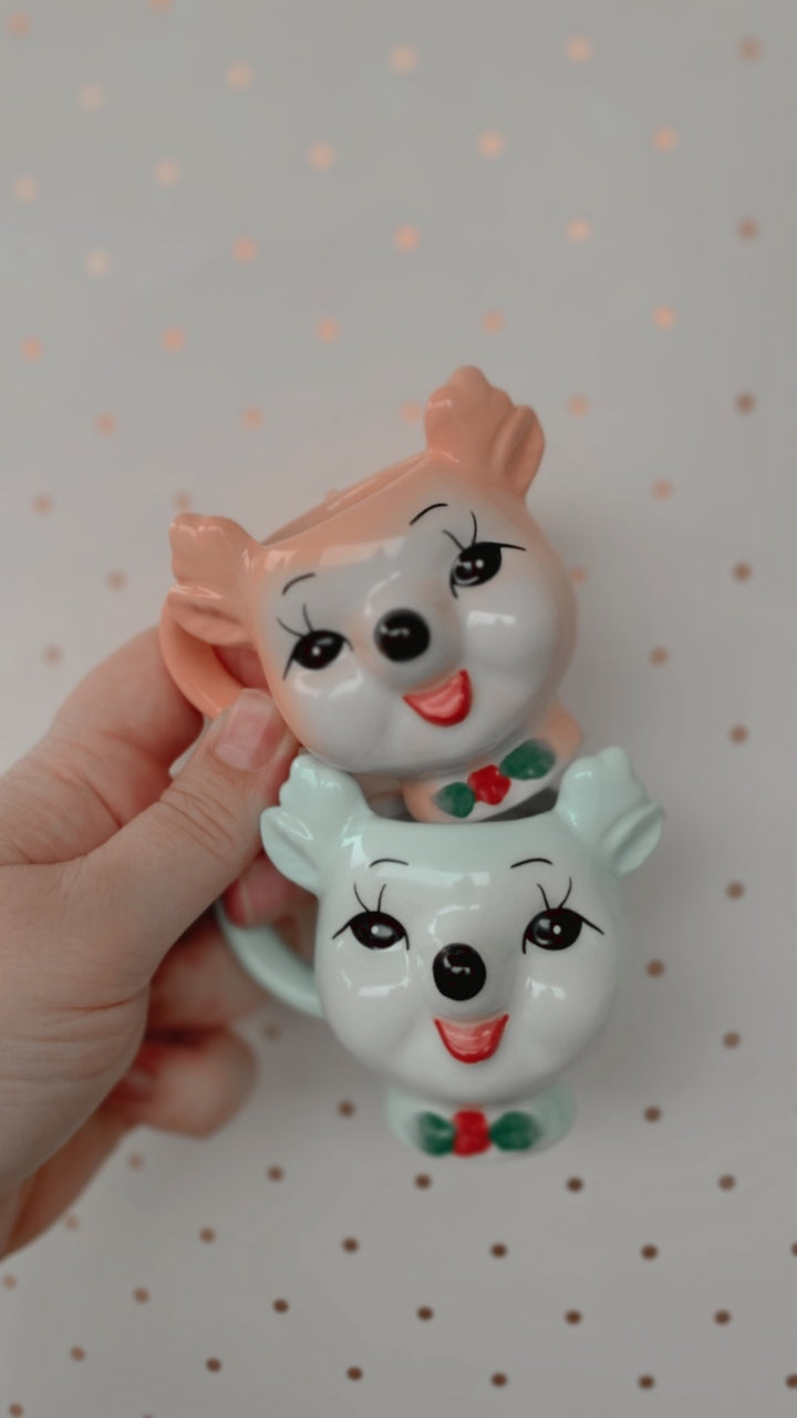 Meet Dancer & Prancer, the teeniest tiniest most delicate set of mini mugs you ever did see! We designed these to be even smaller than our exclusive mini mugs, to be a sweet and unique addition to your holiday decor. A Tea party for 2 with your littles. A fun festive shot or espresso. So versatile and fun. The perfect gift for a child or a child at heart.