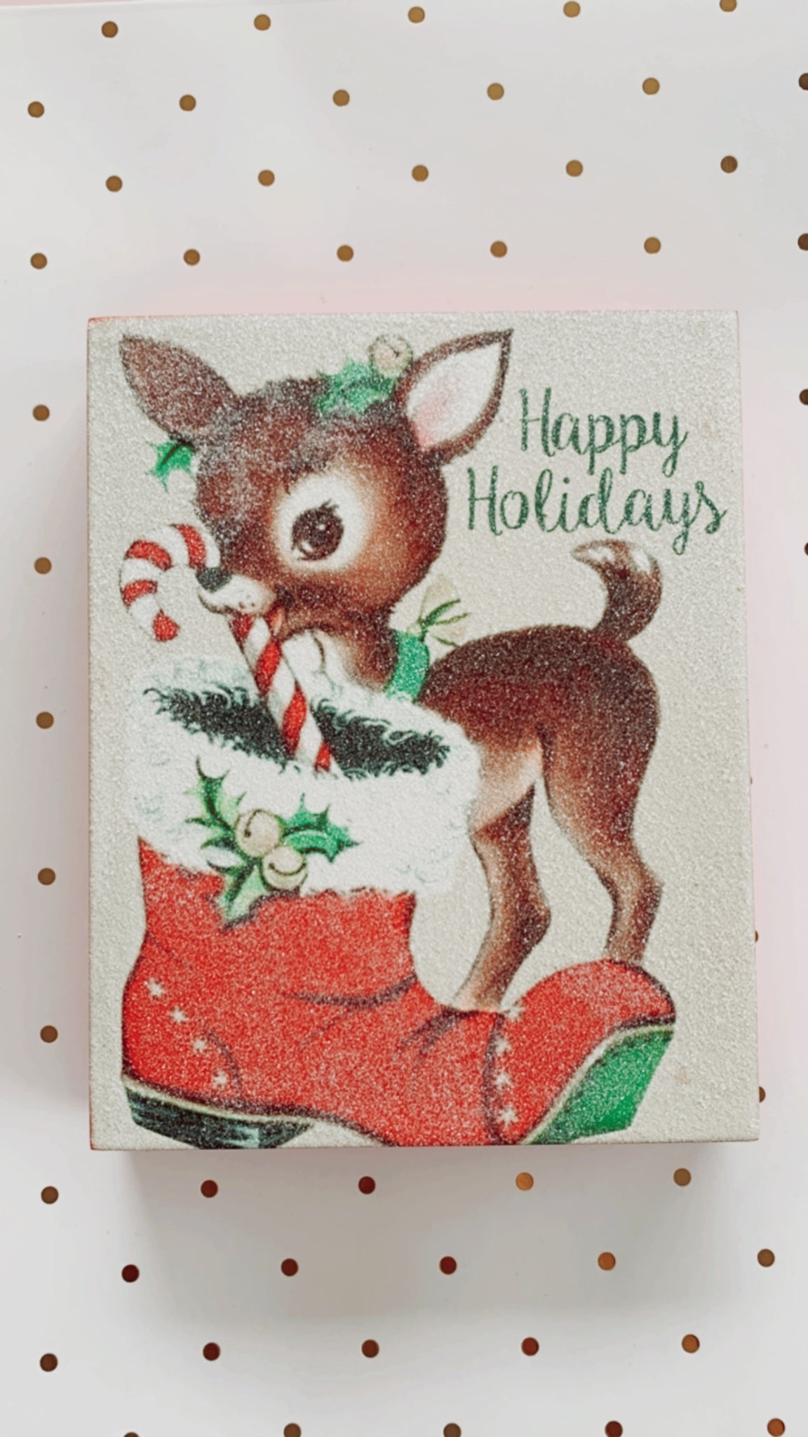 Georgeous Nostalgic Retro Images with a sugar sparkle glaze printed on a sturdy solid wooden block. Perfect for tiered displays.