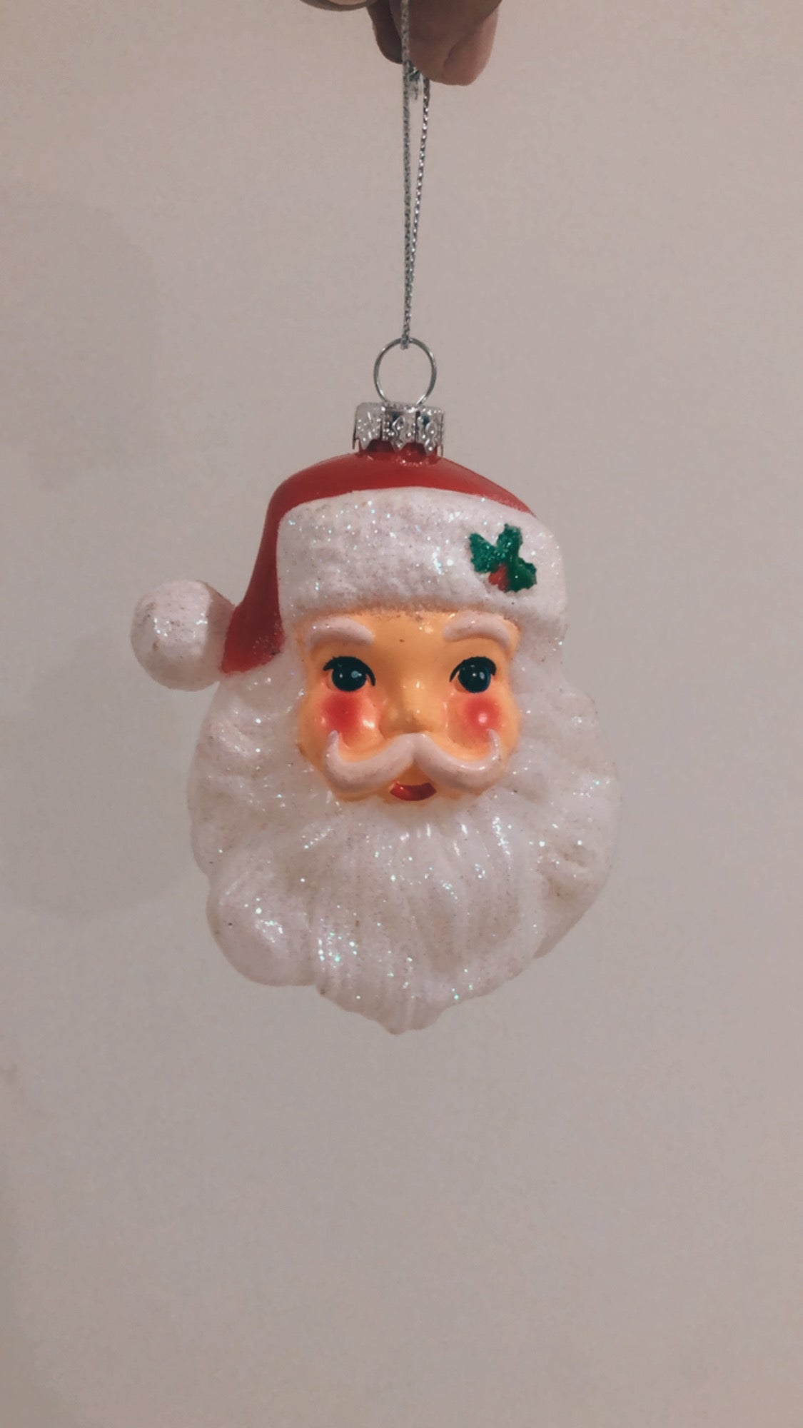 This shatterproof Santa head ornament from Kurt Adler is a fun addition to any holiday décor or Christmas tree. It features a glittered Santa head with a matching red and white glittered Santa hat.